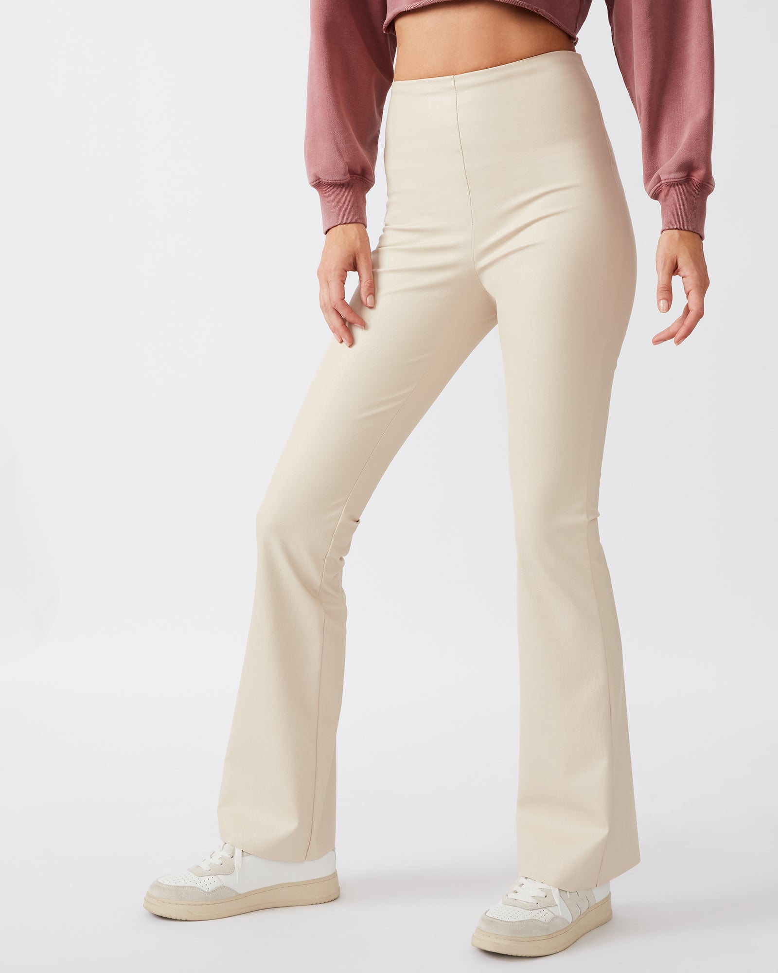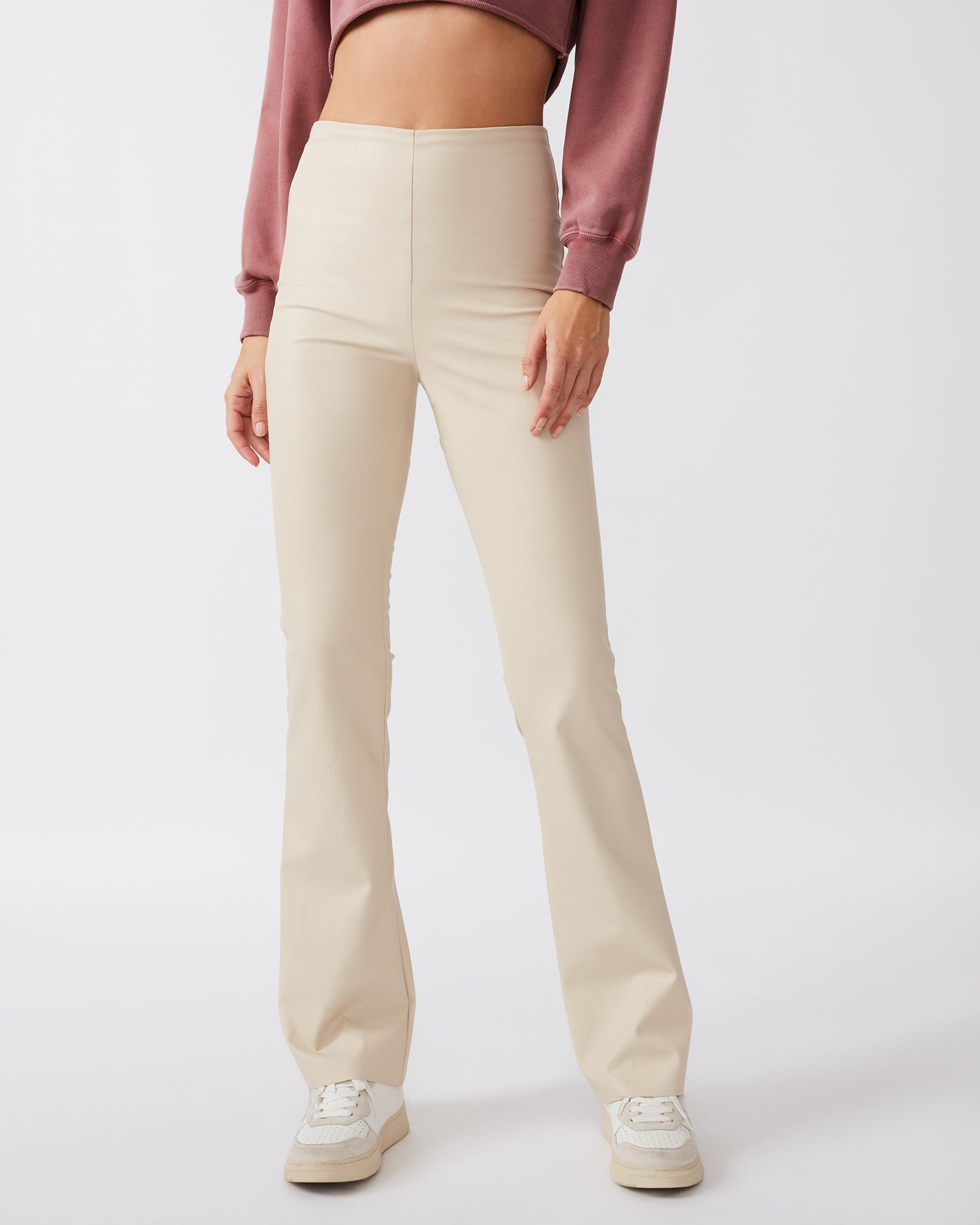 FAUX LEATHER STRETCH-FLARE PANTS
