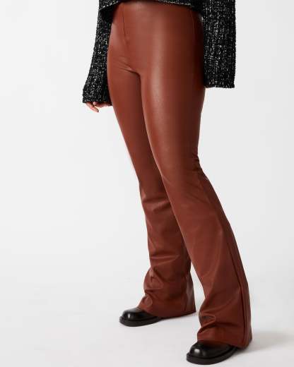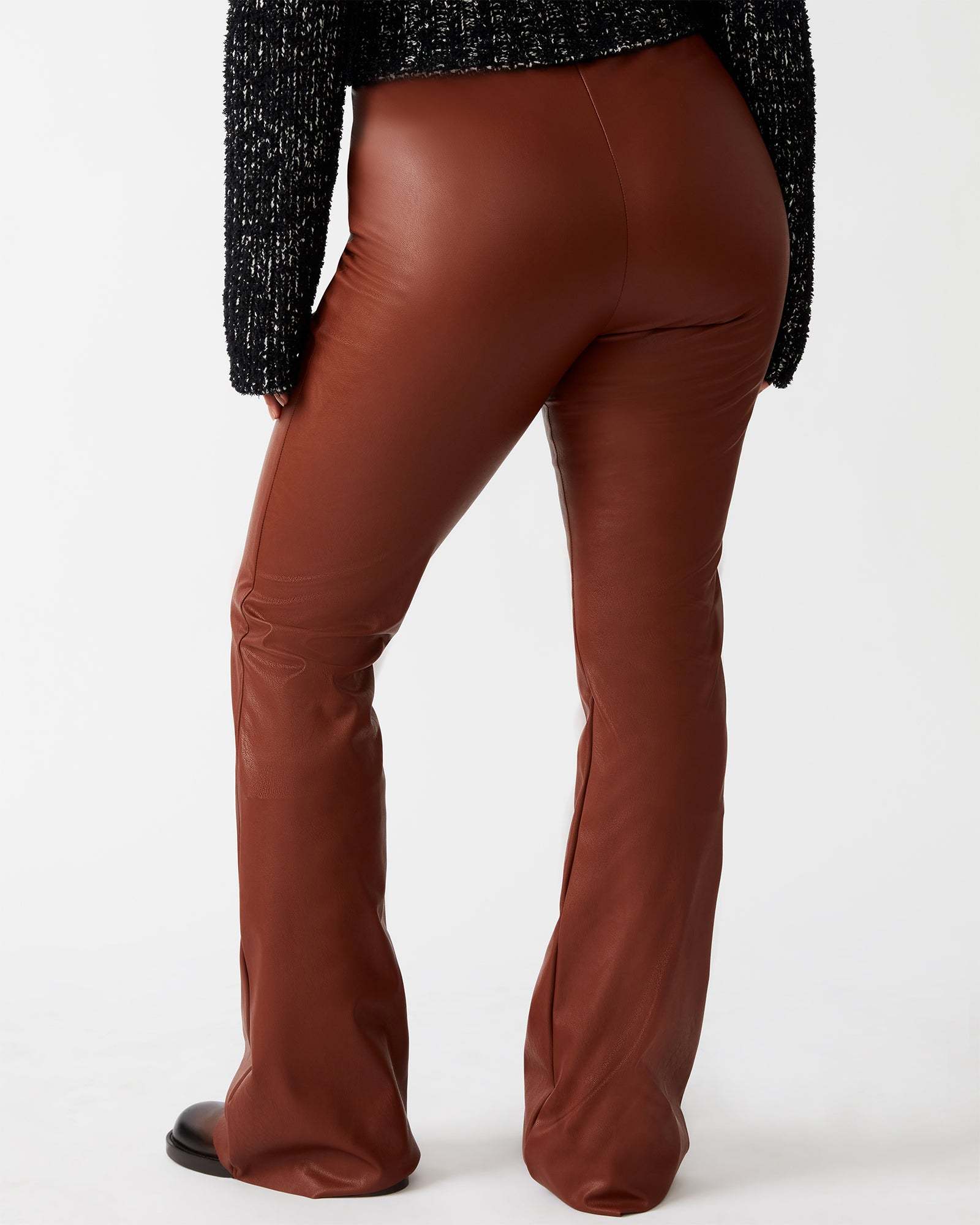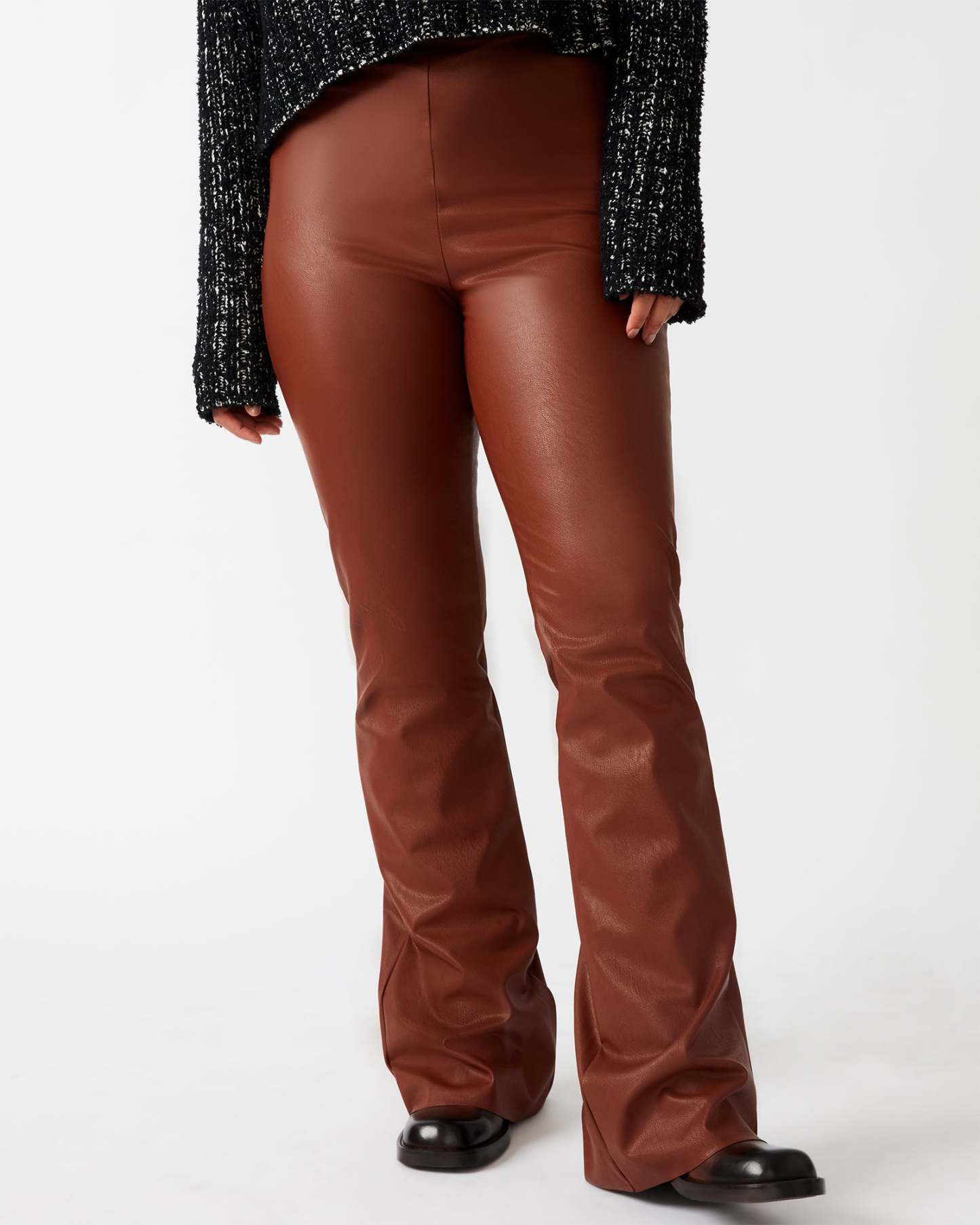 Flared faux leather features stretch fabric, pull-on construction, and lining for a seamless look that's super durable.