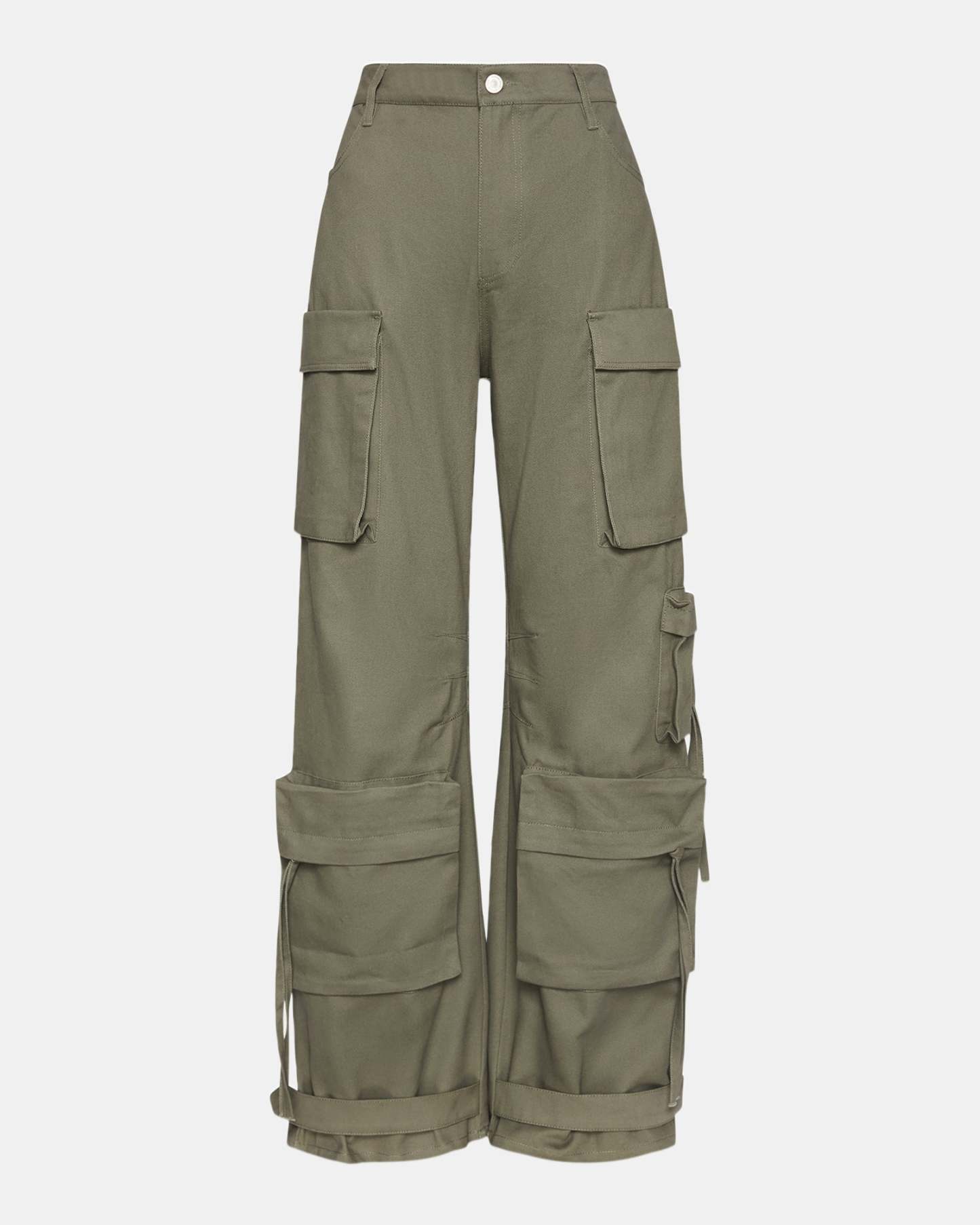 Mid-weight cotton twill fabric gives the wide-leg DUO cargo just the right amount of structure and volume. Snap straps around the ankle let you cinch the cuffs to adjust the silhouette.