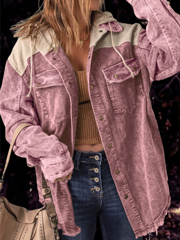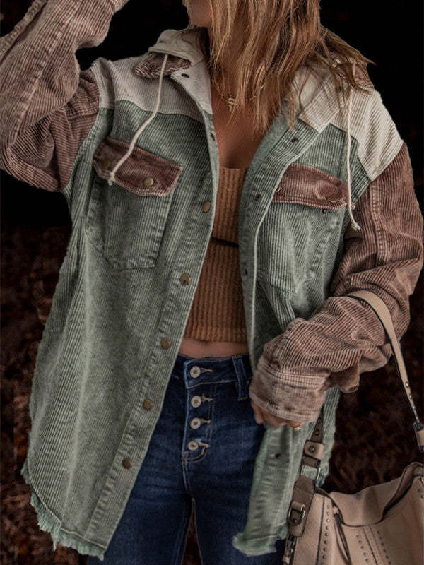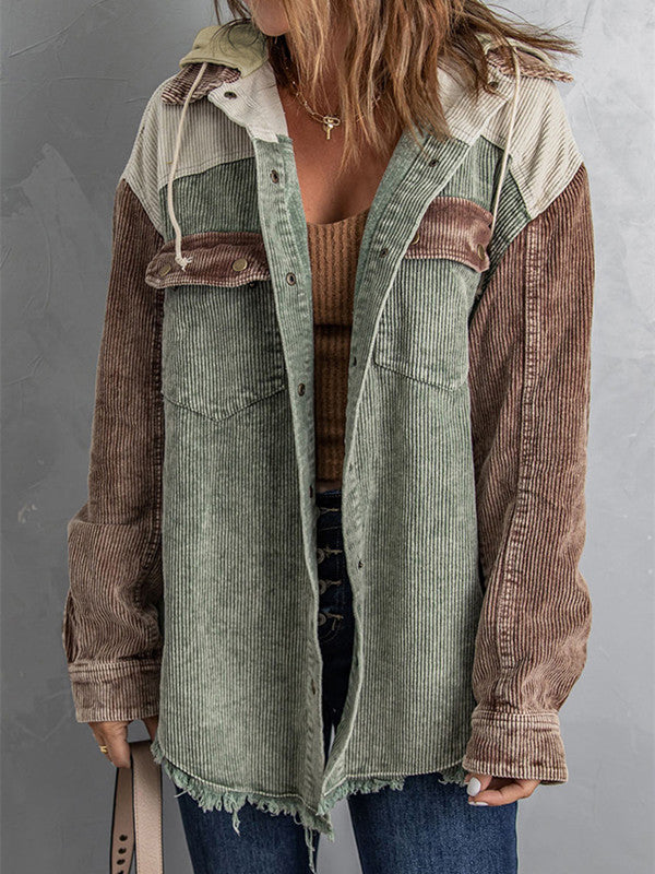 Boyfriend Color Block Hooded Corduroy Coat